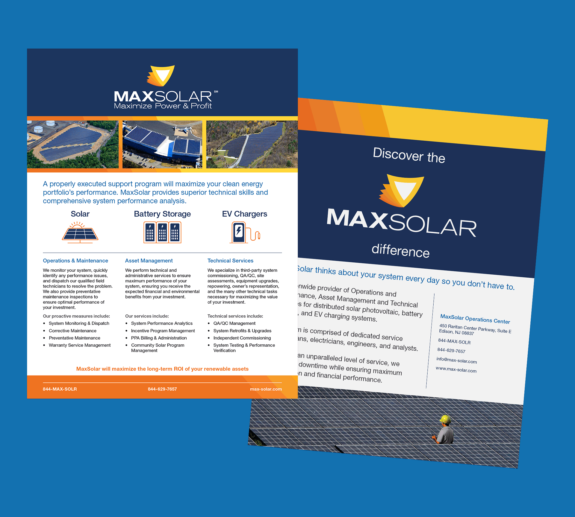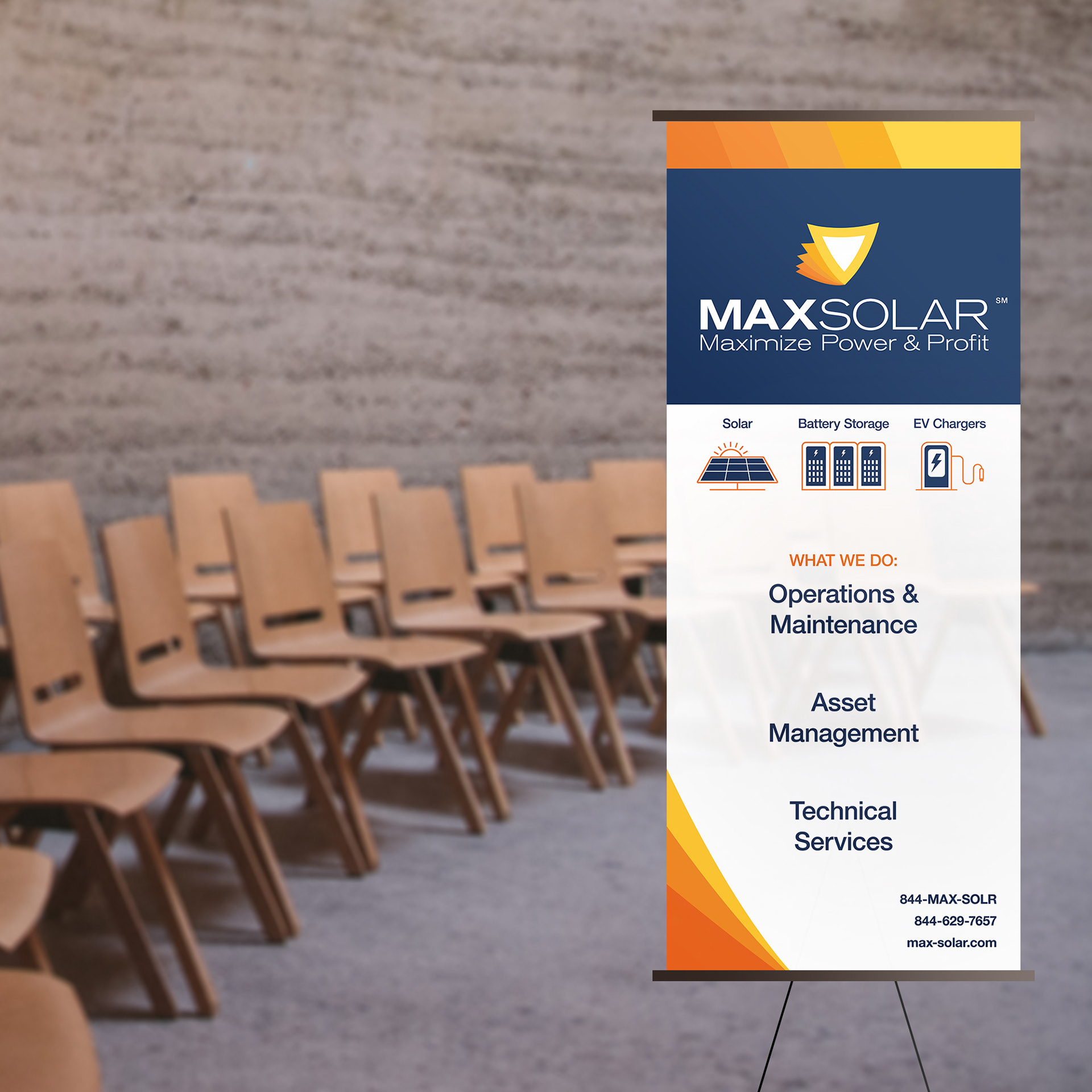 MaxSolar is a national provider of operations and maintenance services for solar, battery energy storage, and EV charging systems. I did a complete refresh of their trade show sales pitch materials, including an info page, a banner, and a presentation template.